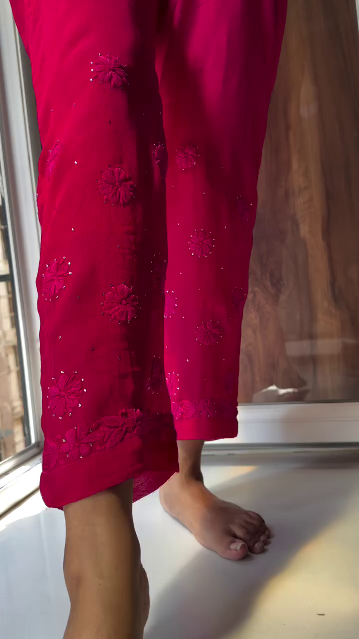 Every set is meticulously hand-dyed and embroidered, with slight variations in motifs that reflect the artisanal handwork involved—making each piece truly one-of-a-kind. The soft, flowy georgette fabric ensures effortless grace while keeping you comfortable through long celebrations and joyful family gatherings.