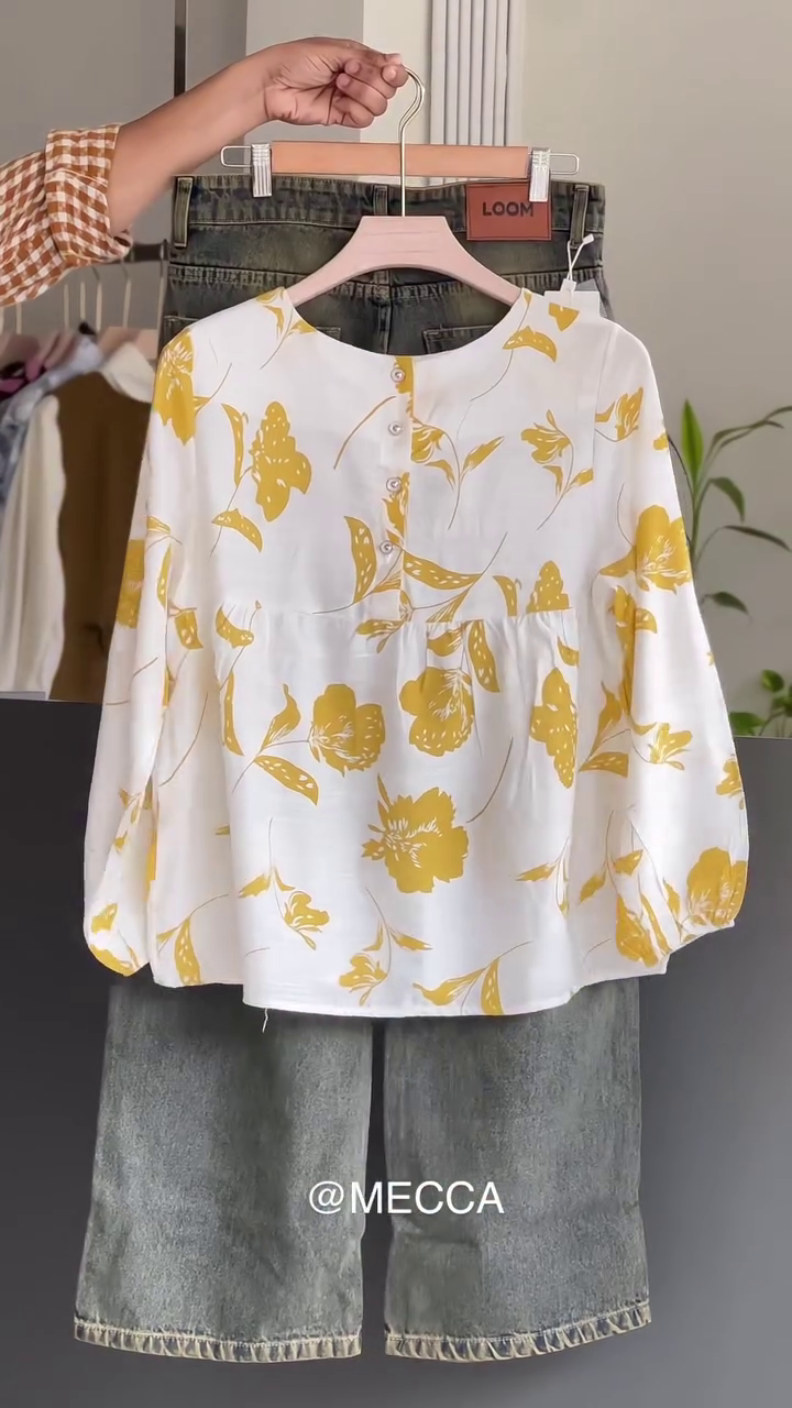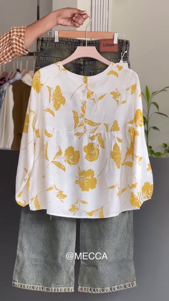 #MeccaFashion #FloralTop #DenimLove #CasualChic #EverydayStyle #EffortlessElegance #OOTD #WomenStyle #TrendyOutfits