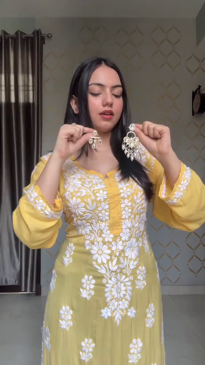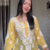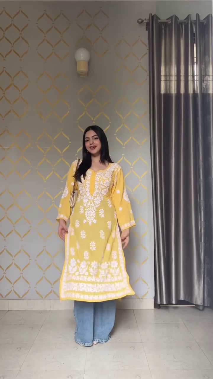 Bright, cheerful, and effortlessly stylish – this yellow kurti with white embroidery is your go-to outfit for a breezy daytime look. ✨ The vibrant sunshine hue uplifts the mood, while the delicate floral threadwork adds grace and charm.