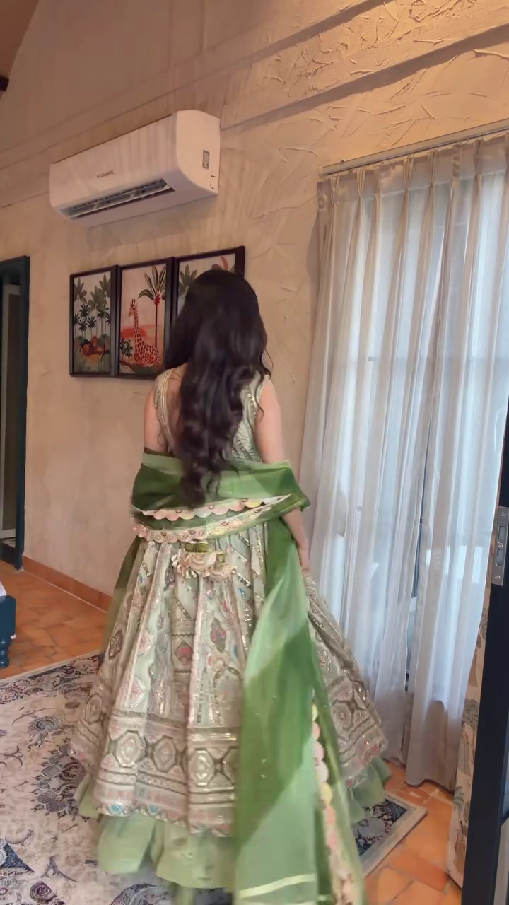 The beautiful dual-tone green dupatta flows gracefully and adds a regal touch to your overall outfit. Perfect for weddings, haldi, mehendi, receptions, engagement parties, festive functions, or high-end events — this suit guarantees compliments wherever you go! 💚👑
