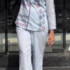 The tailored straight-fit pants elevate the look with unique detailing. Subtle stripe accents and statement tassel-inspired embellishments create a fashionable edge without overpowering the elegance of the outfit 👗 The relaxed yet flattering cut ensures ease of movement while maintaining a chic, streamlined appearance.