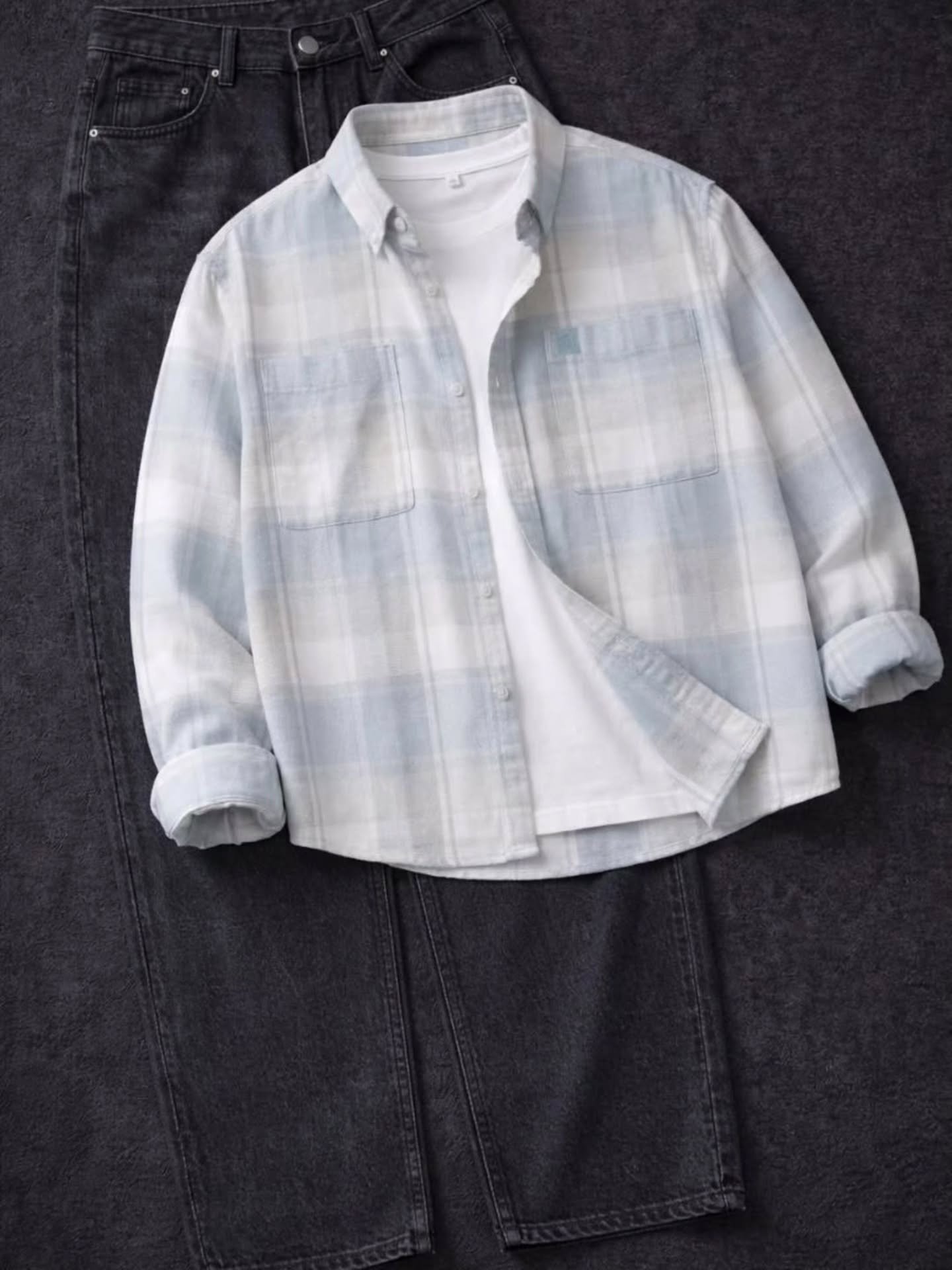 The combination of denim-on-denim with a touch of white creates a harmonious balance that is modern yet effortlessly classic. πŸ‘– The shirt’s relaxed fit contrasts beautifully with the sleek, structured white trousers, offering a dynamic and stylish aesthetic. Accessories like neutral sneakers, loafers, or a belt can further enhance the look, allowing for personal expression while keeping the outfit polished. 😎