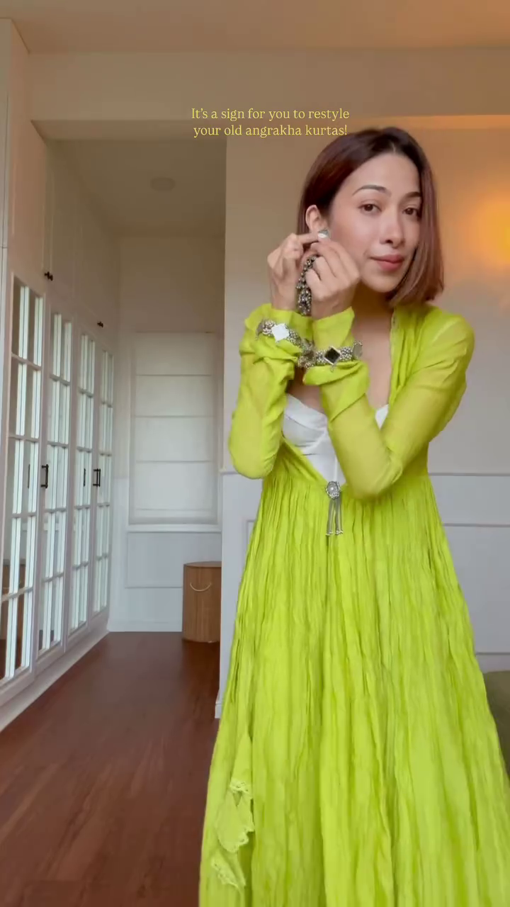 π Be it casual glam or festive charm, this lime green angrakha jacket set is your go-to fusion pick! πβ¨