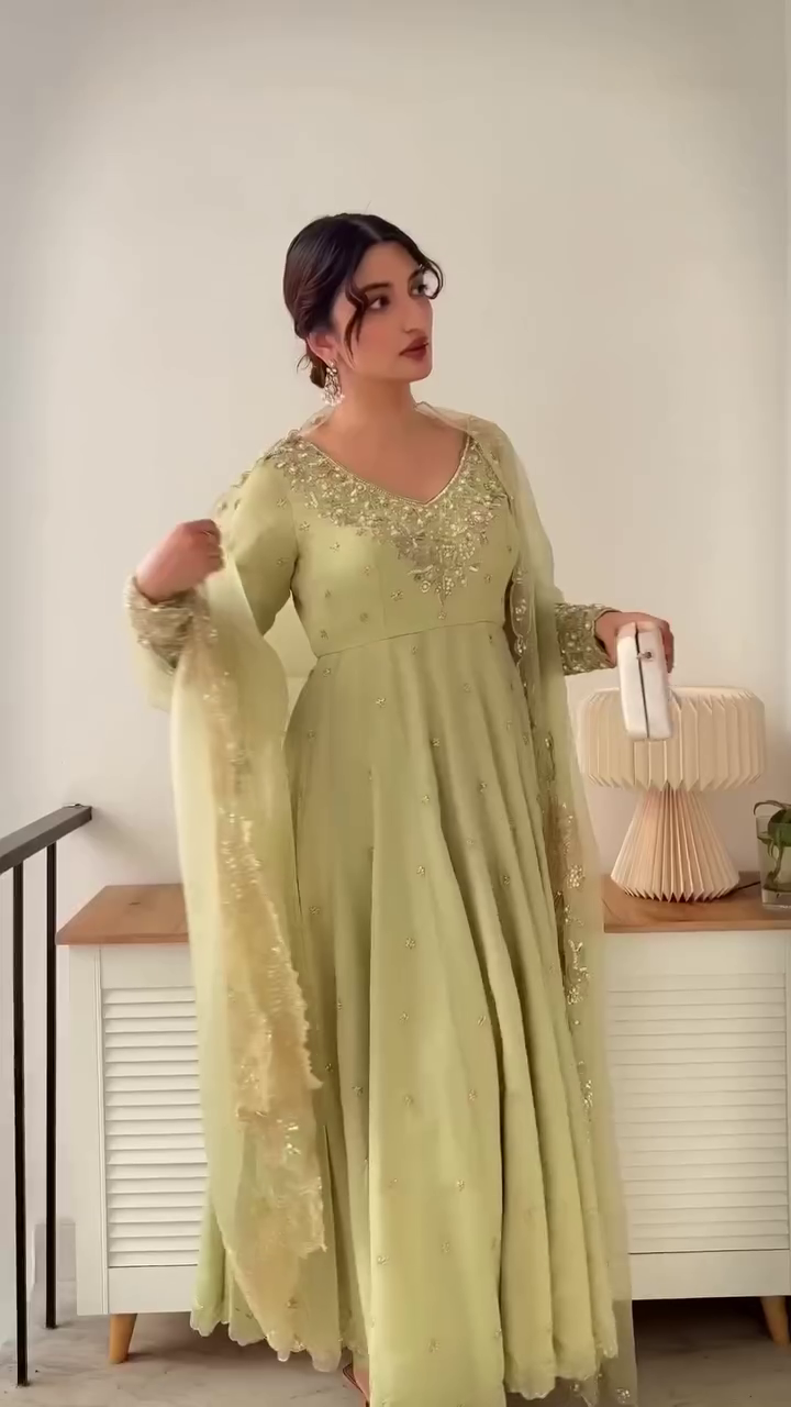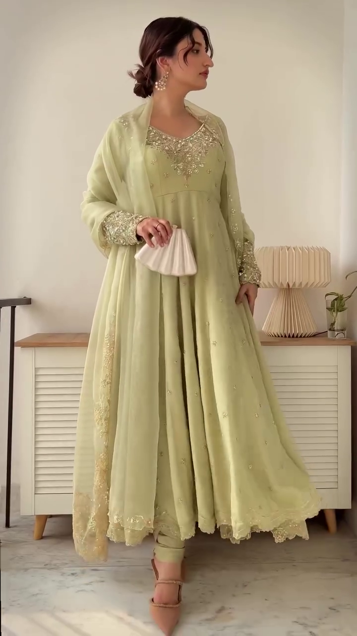 Be the first to review “💫 Ethnic Elegance in Pastel Green with Gold Work 🌸”