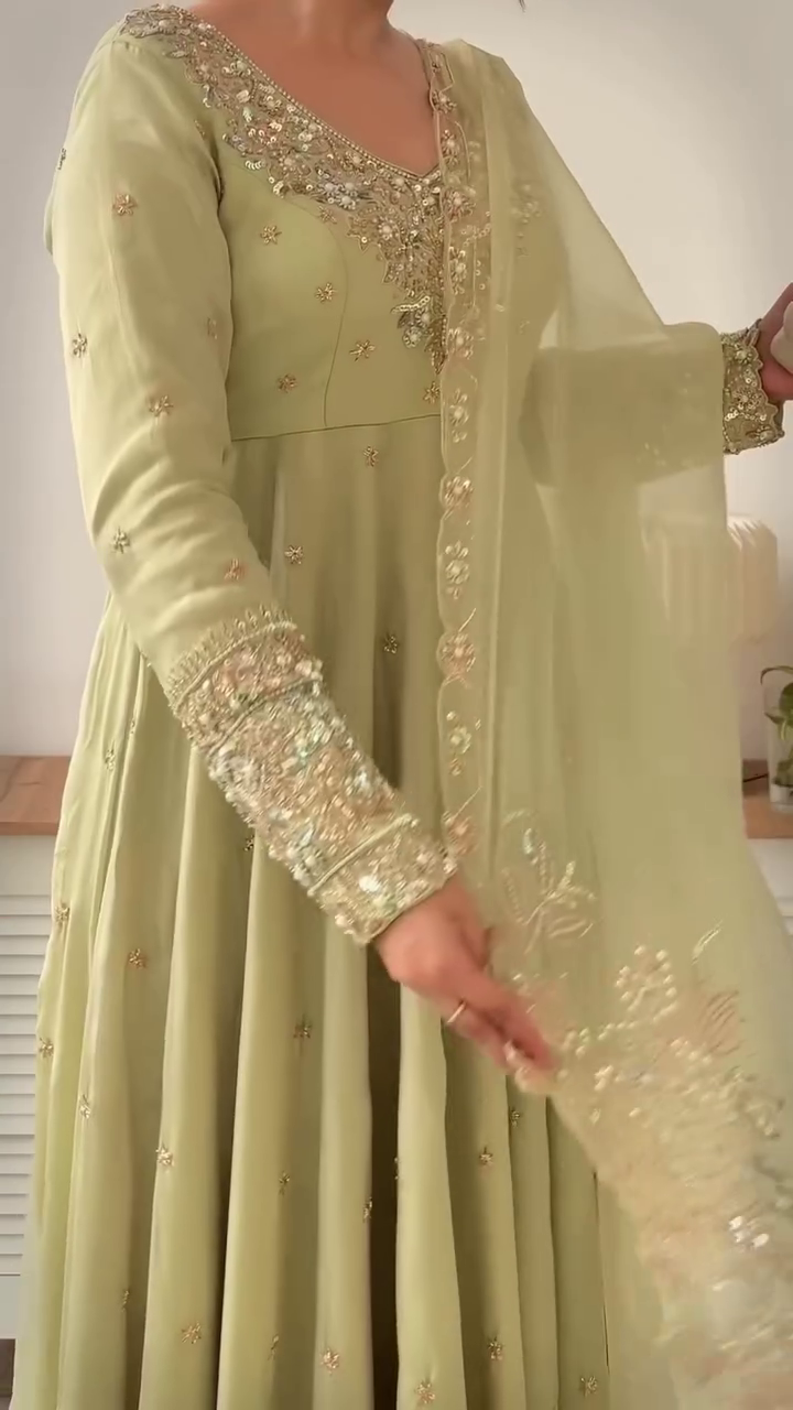 💫 Ethnic Elegance in Pastel Green with Gold Work 🌸
