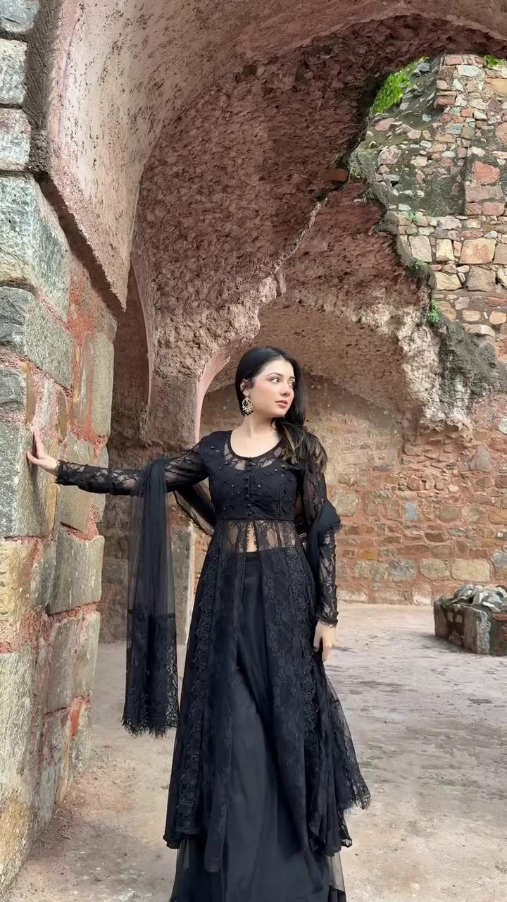 Classic, bold, and effortlessly stunning β this all-black lace outfit redefines timeless charm. The sheer lace detailing brings in a hint of allure, while the flowy silhouette keeps it graceful and regal. β¨