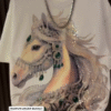 π€ Sparkling Style: White Cotton Graphic T-Shirt with Rhinestone & Emerald Horse Print
