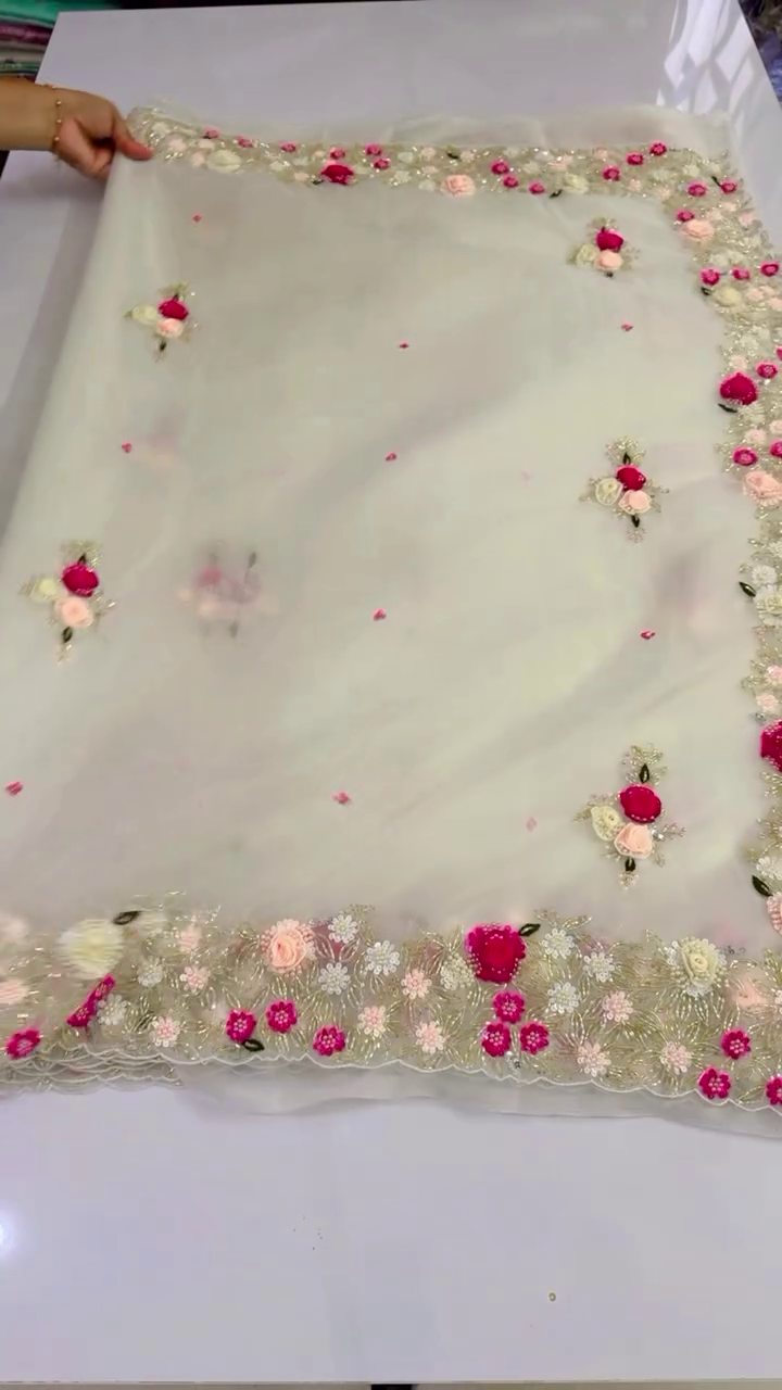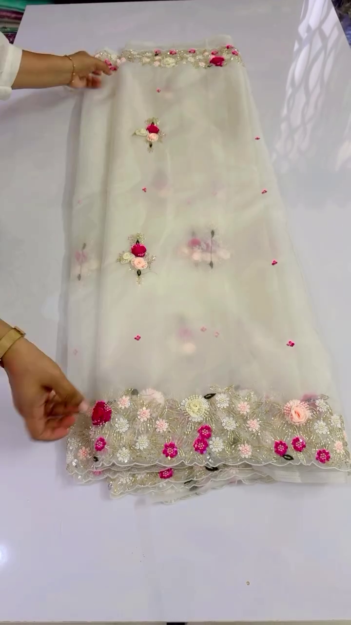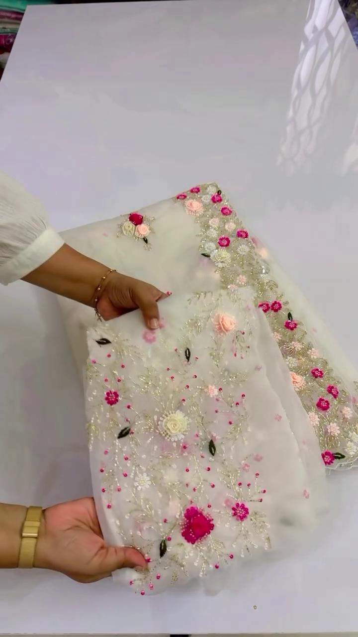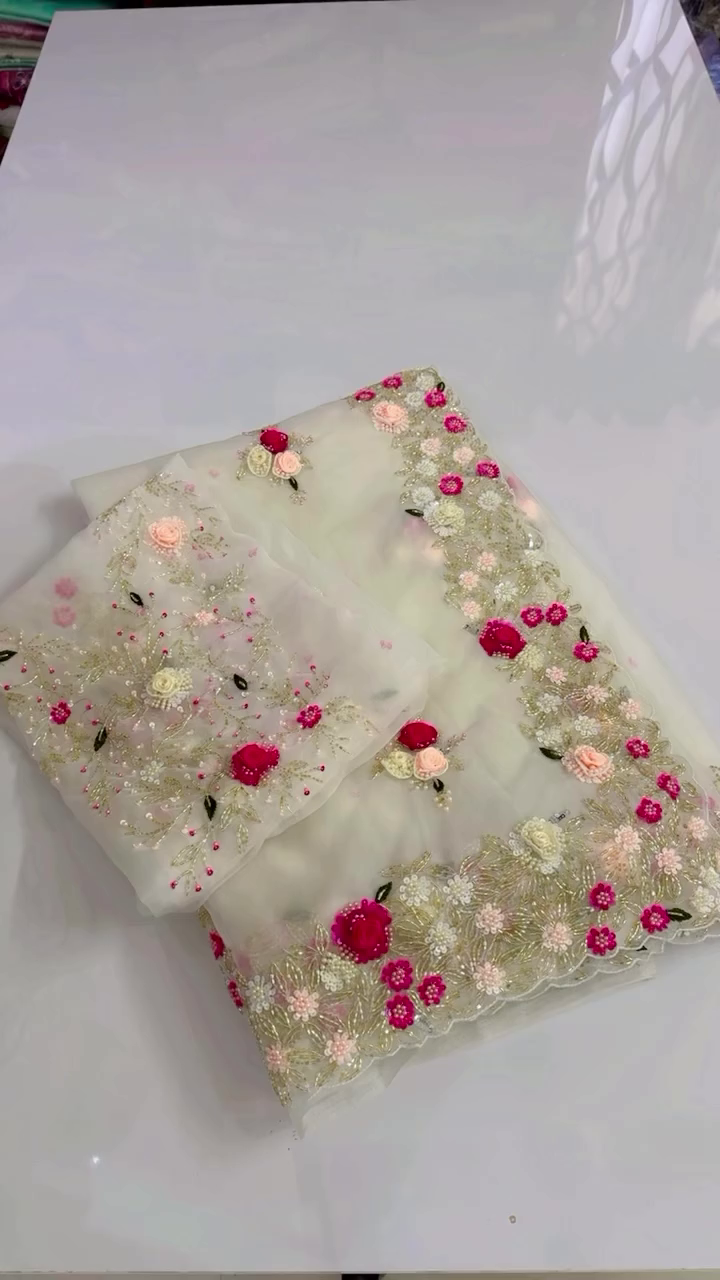 Effortlessly elegant and timelessly stylish, our Designer Organza Saree is a true celebration of grace and glamour. Crafted from premium organza fabric, this saree is designed for the modern woman who loves to make a statement while keeping things light, refined, and luxurious.