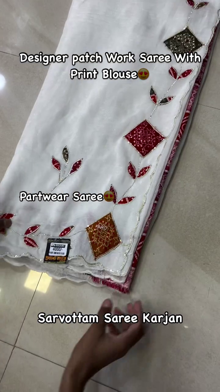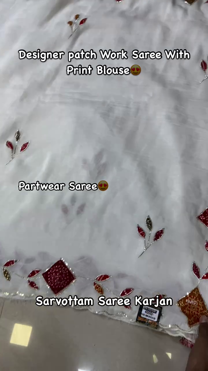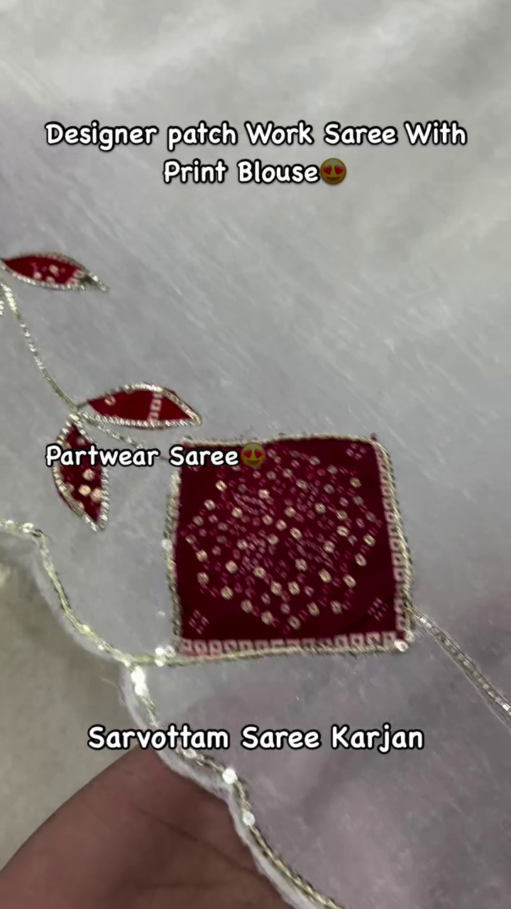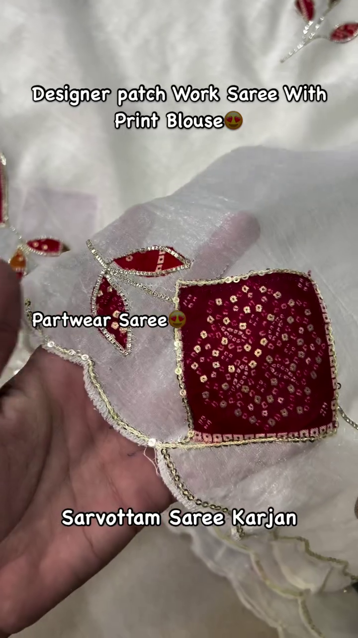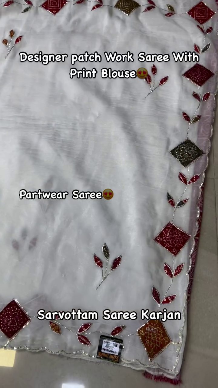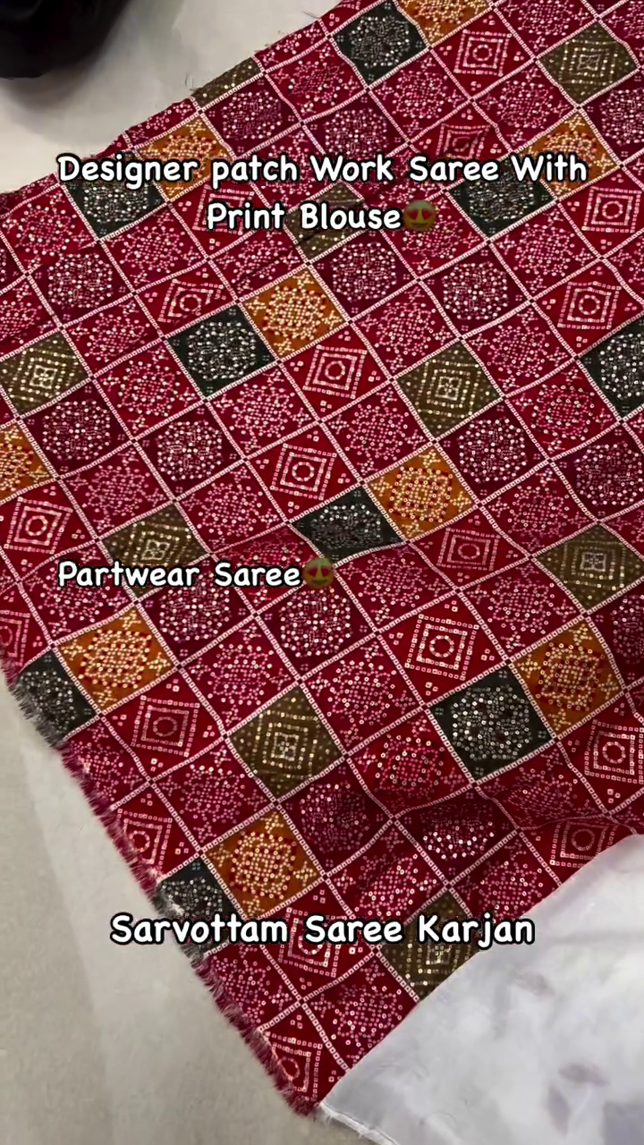 Designer Patch Work Partywear Saree with Printed Blouse – A Fusion of Craft & Celebration