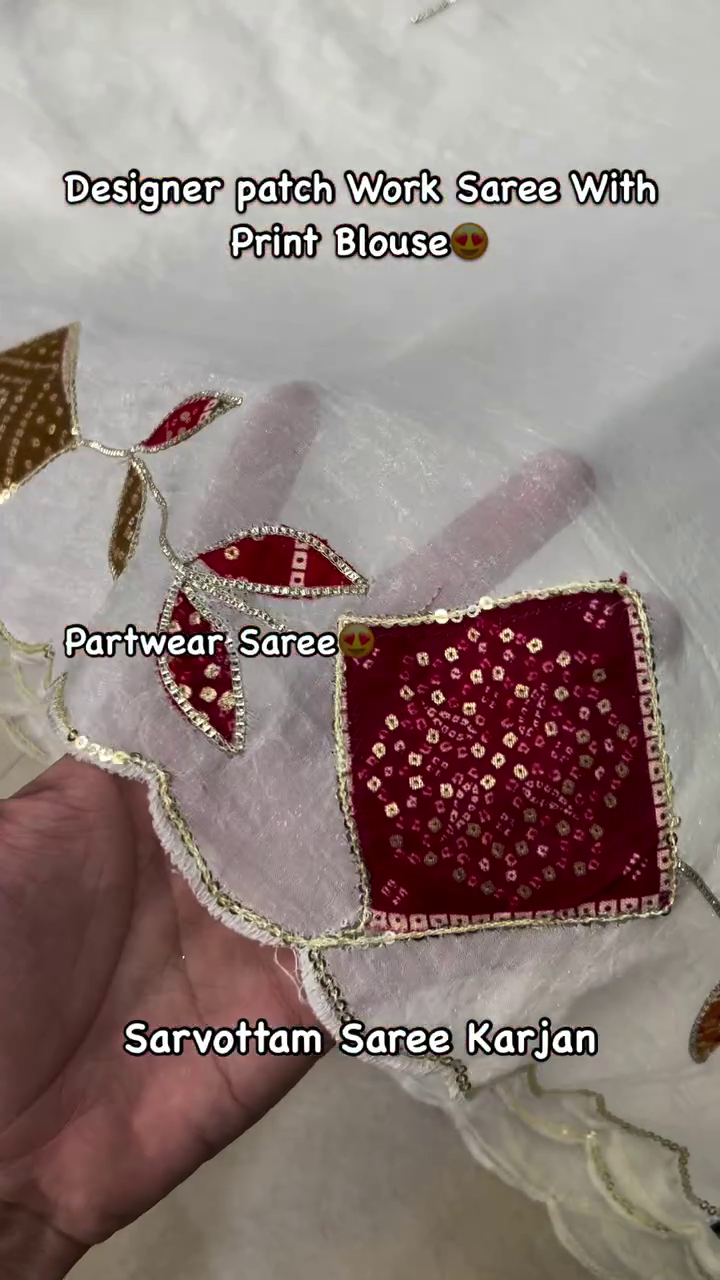 The saree features intricately placed patch work that adds texture, depth, and dimension—turning every drape into a canvas of creativity. Each patch is thoughtfully stitched to enhance the flow and beauty of the saree, giving it a rich, statement-making appearance without overwhelming your look.
