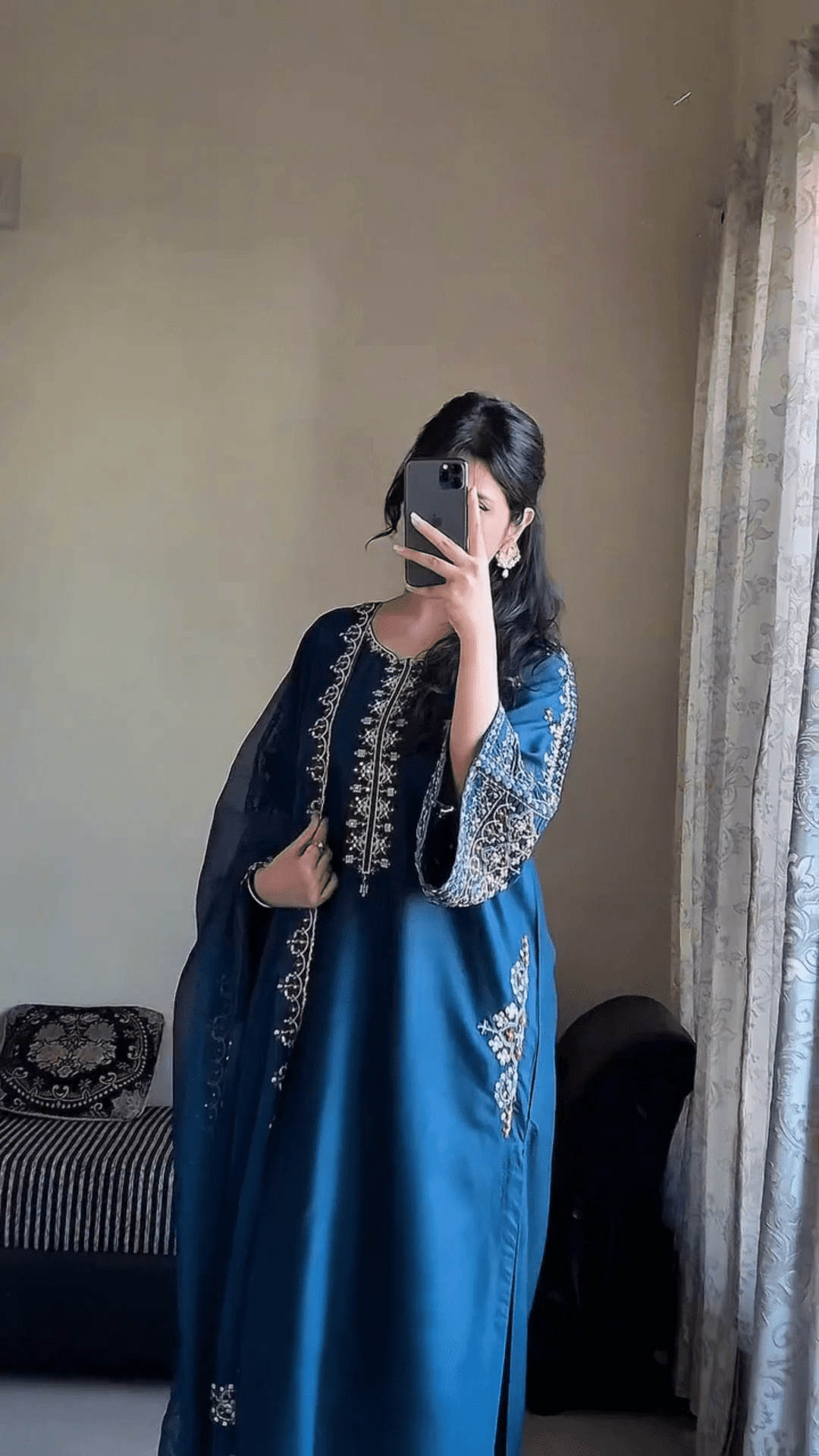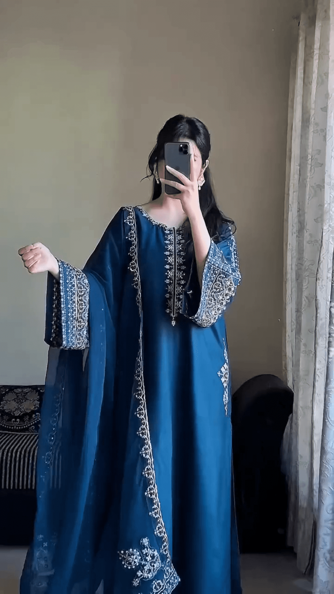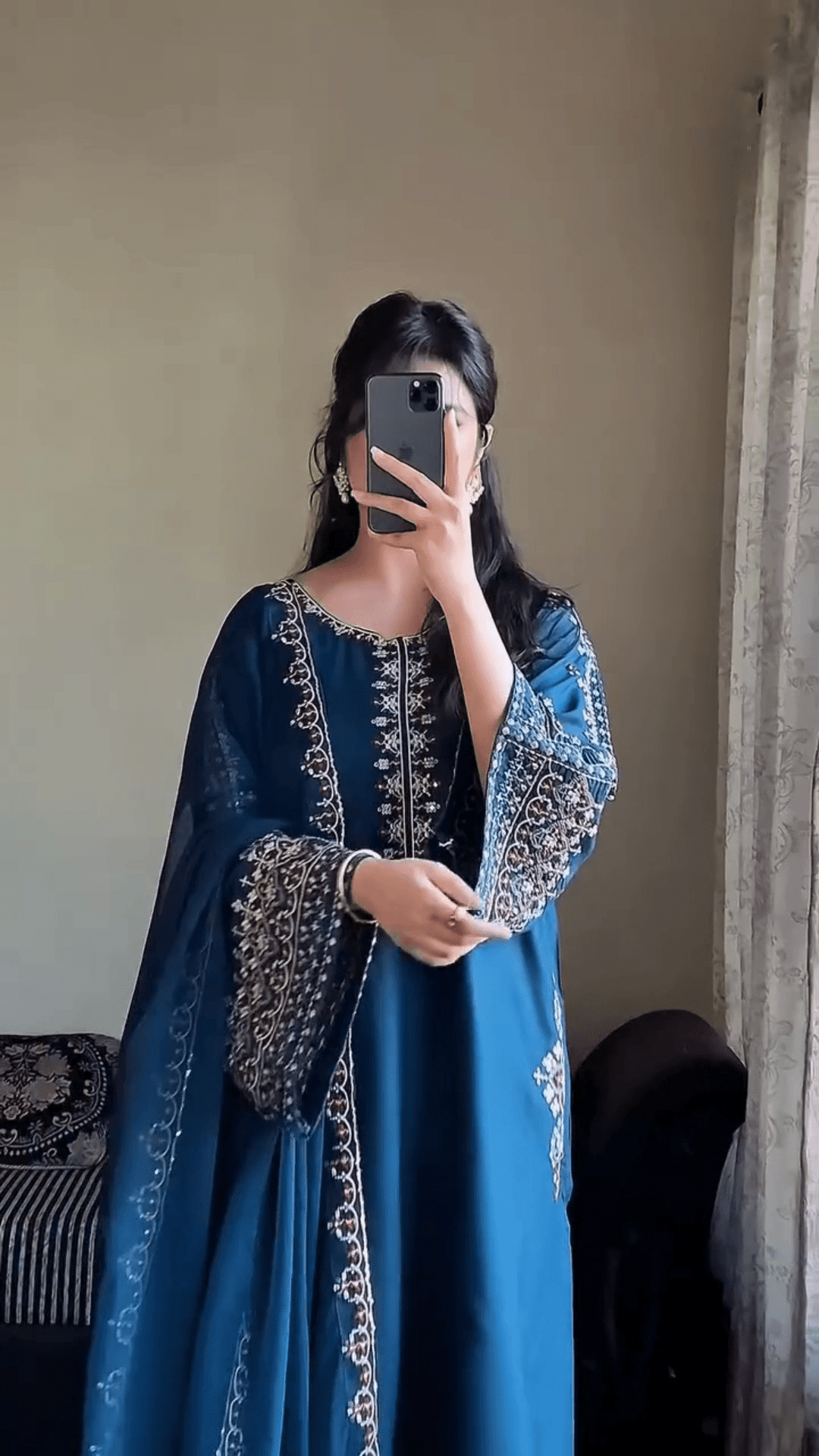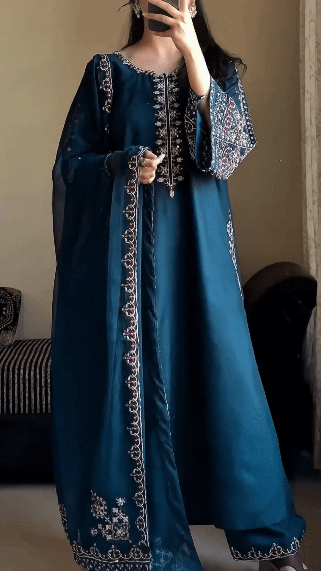 Upgrade Your Ethnic Wardrobe With This Elegant Embroidered  Kurta Set, Designed To Reflect Timeless Grace With A Modern Touch. Perfectly Curated For The Contemporary Indian Woman, This Outfit Features A Beautifully Embroidered Kurta, Coordinated Trousers, And A Striking Printed  Dupatta – A Complete Ensemble That Balances Sophistication With Comfort.