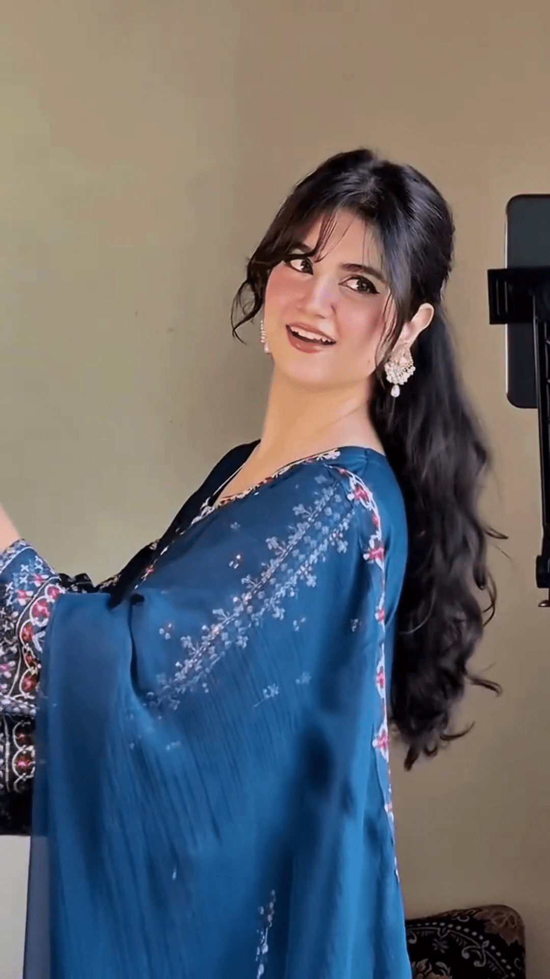 Pair This Outfit With Traditional Jhumkas, Bangles, And Comfortable Kolhapuri Sandals Or Juttis. Opt For A Low Bun Or Soft Waves To Enhance The Ethnic Appeal. Add A Bindi And Light Makeup For A Complete Desi Diva Look.