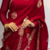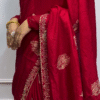 - Design: The saree showcases traditional ethnic motifs, such as paisleys, florals, and geometric patterns, meticulously embroidered using Zari threads to add a touch of royal opulence.