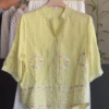+ Free ShippingFresh Summer Elegance: Pastel Embroidered Shirt with Classic White Pants
