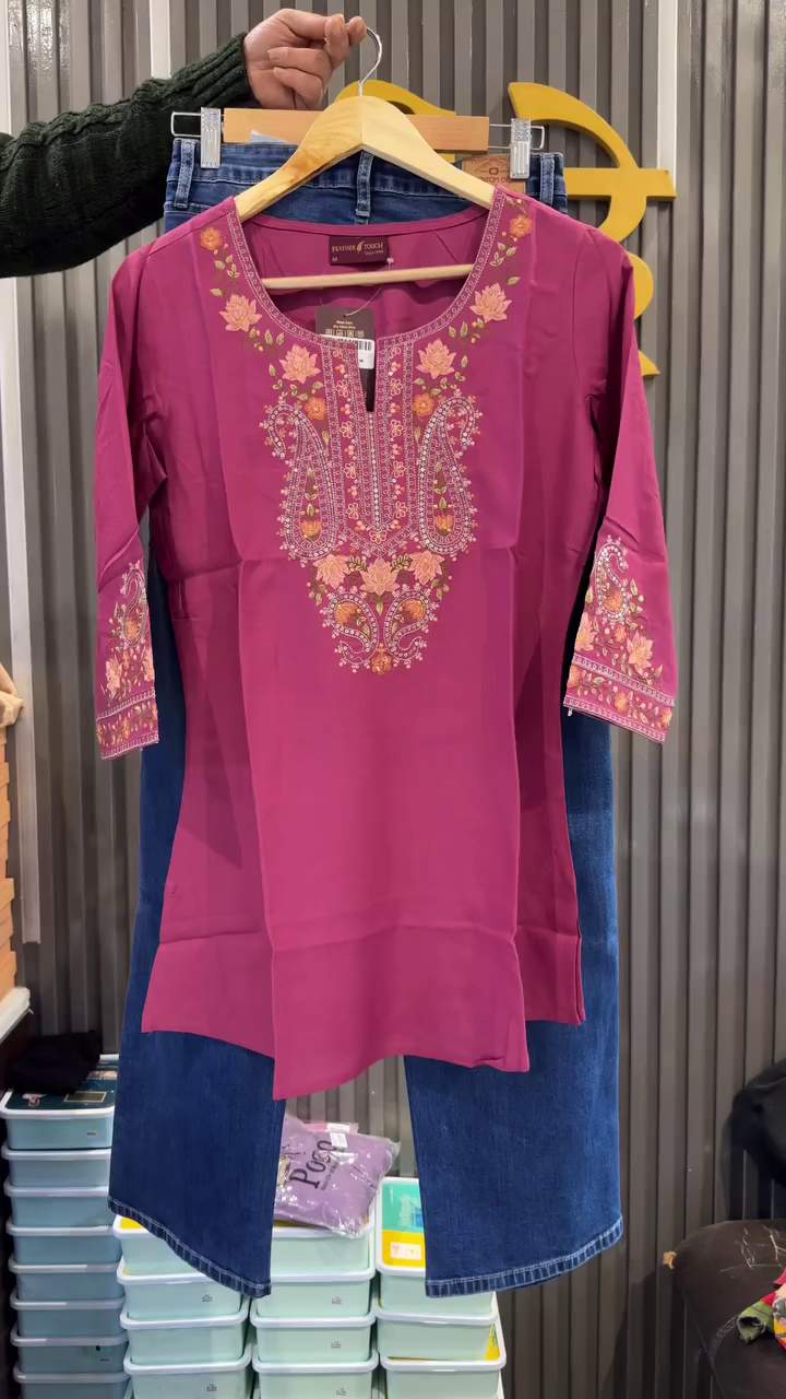 The short length adds a modern, youthful twist, while the detailed hand embroidery brings out the regal charm. Whether you pair it with jeans, palazzos, or a classic churidar, this kurti promises to turn heads with its vibrant color and artisanal finish.
