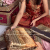 - Heeramandi Edition Dye: A unique, vibrant dye that enhances the saree’s aesthetic, showcasing rich colors that exude royalty and elegance.