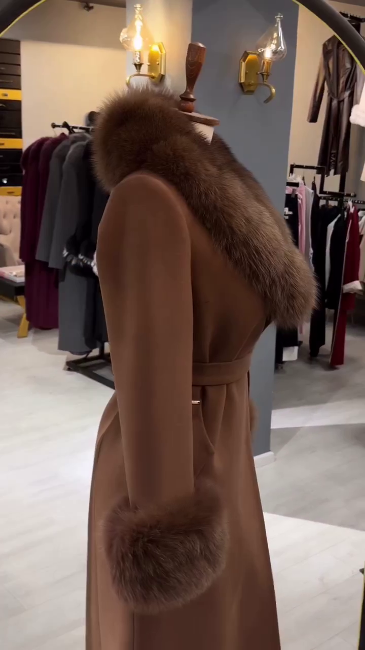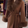 This coat comes in a rich chocolate brown shade 🀎 that looks super luxurious and timeless. The highlight is the premium faux fur collar 🦊✨ that adds a royal designer touch and keeps your neck warm in cold weather ❄️. The coat also features matching fur cuffs on the sleeves, giving it a complete luxury winter look.