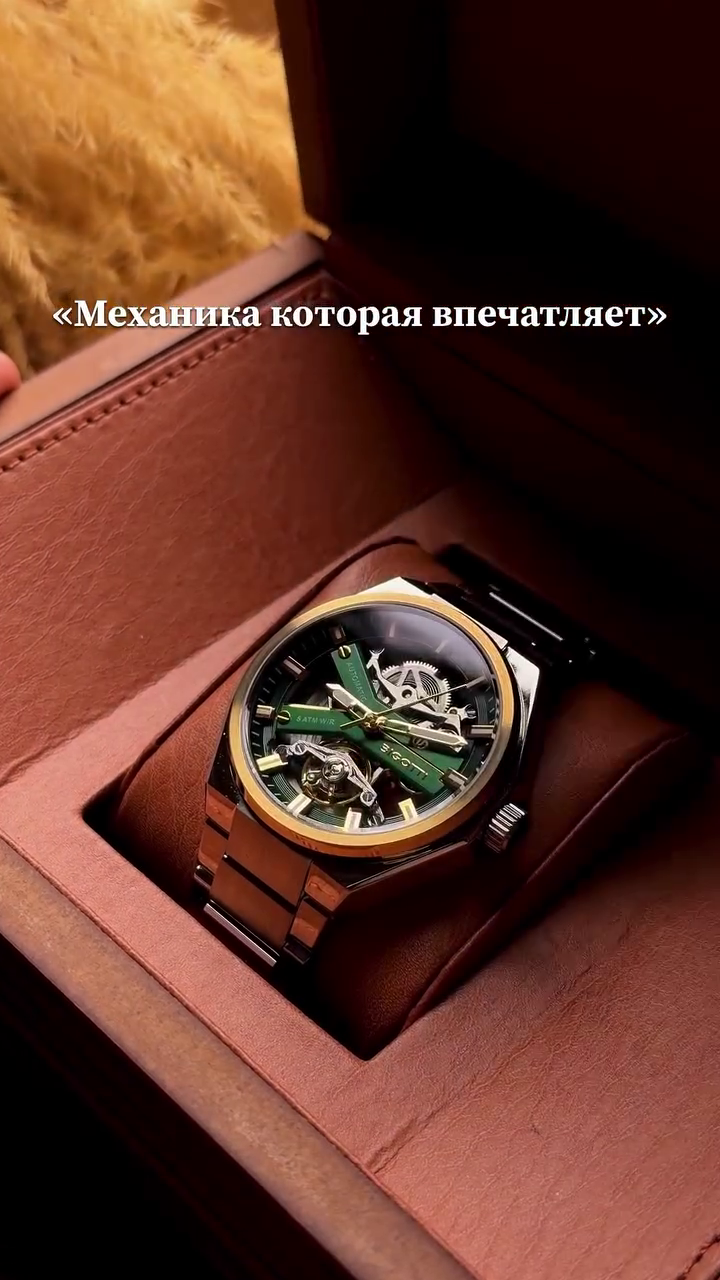 The highlight of this watch is its stunning green skeleton dial 🌿✨ with an eye-catching open-heart mechanism that allows you to see the inner movement in action. This premium design gives the watch a rich, high-end look that instantly stands out. It’s not just a watch β€” it’s a style statement and a symbol of confidence πŸ˜ŽπŸ‘‘.