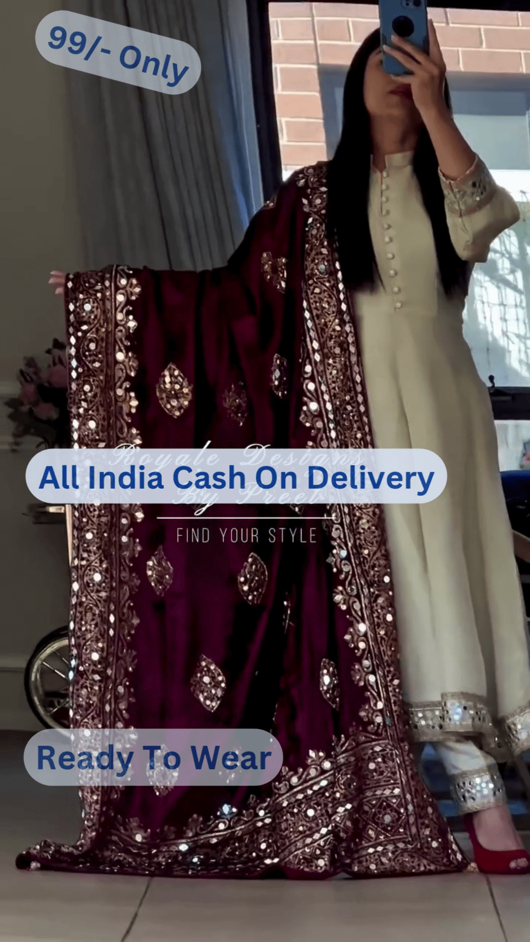 Dry Clean Preferred To Retain Embellishment & Fabric Texture. Iron On Low Heat Only.