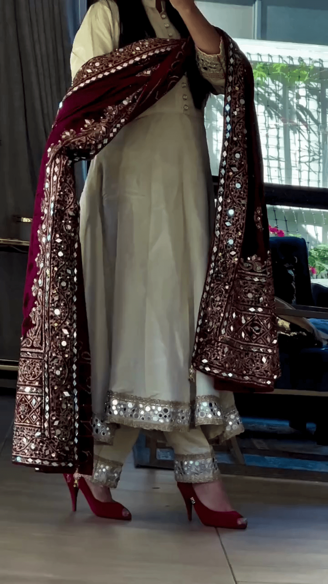 • Dupatta: Light-Weight Contrasting Or Coordinated Dupatta With Border Work Or Printed Highlights