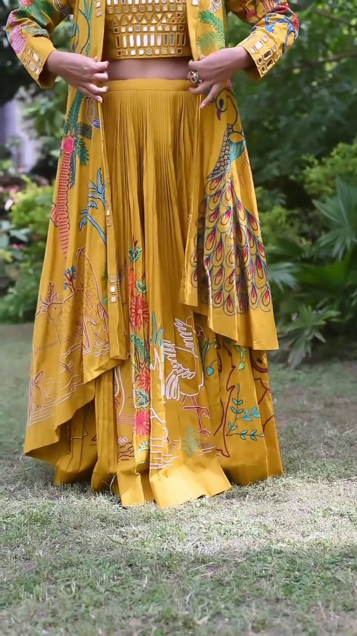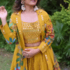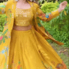 Whether you’re attending a sangeet, mehndi, or festive celebration, this sharara suit set promises to elevate your ethnic wardrobe. Its combination of fine fabrics, vibrant yellow color, and traditional embroidery make it a standout outfit for any special occasion.