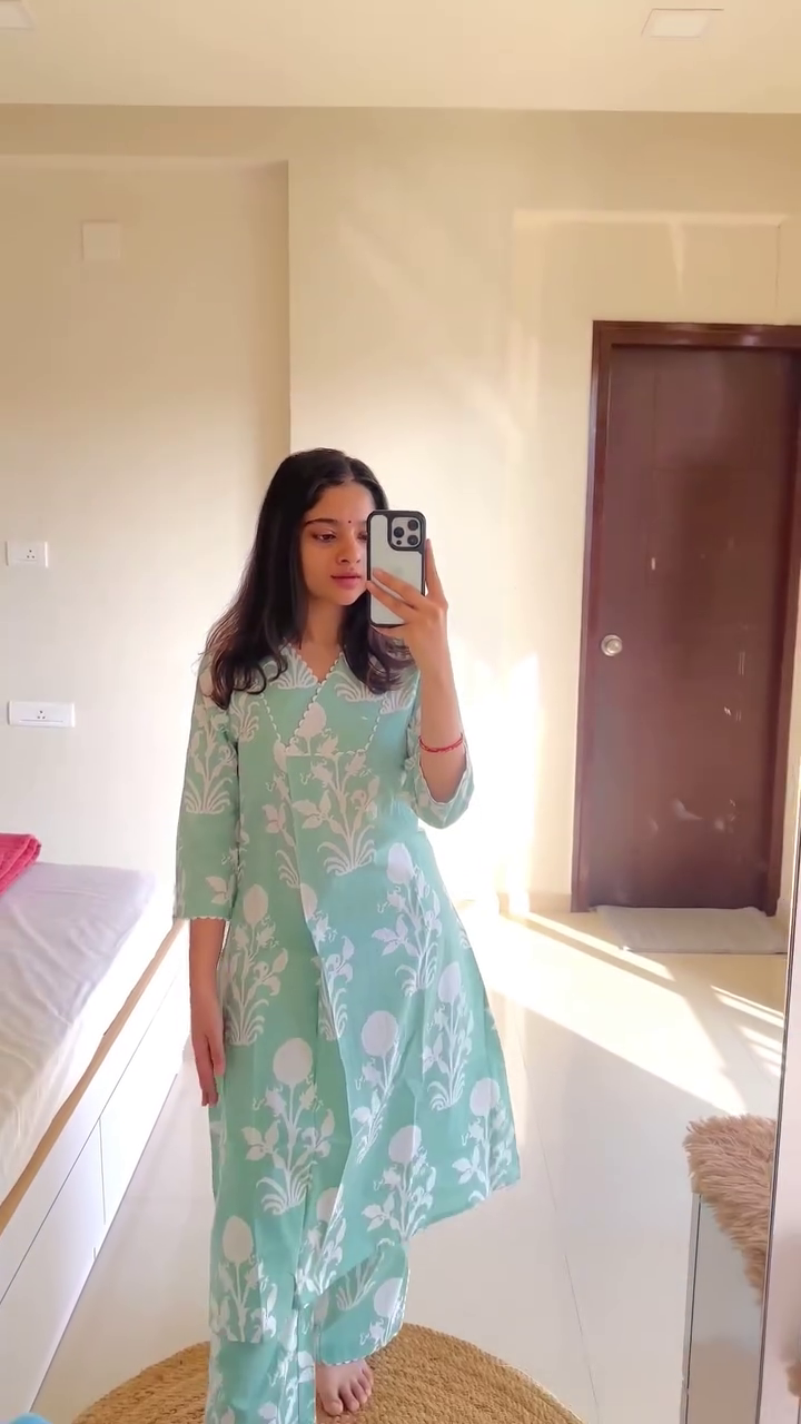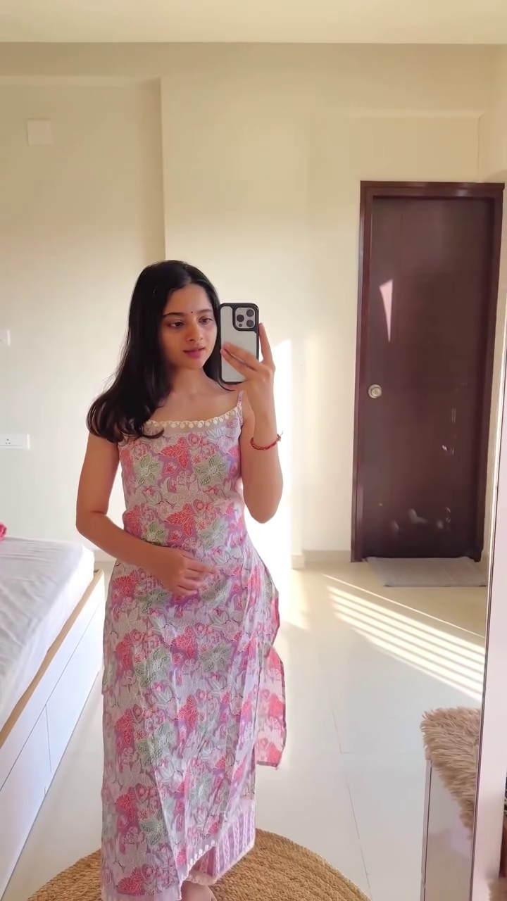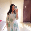 Crafted from premium-quality fabric, the Anarkali gown features a flattering V-neckline that adds a touch of sophistication and elongates the neckline for a graceful look. The knee-length cut gives it a trendy and youthful vibe while retaining its ethnic appeal, making it perfect for parties, small gatherings, and festive events.
