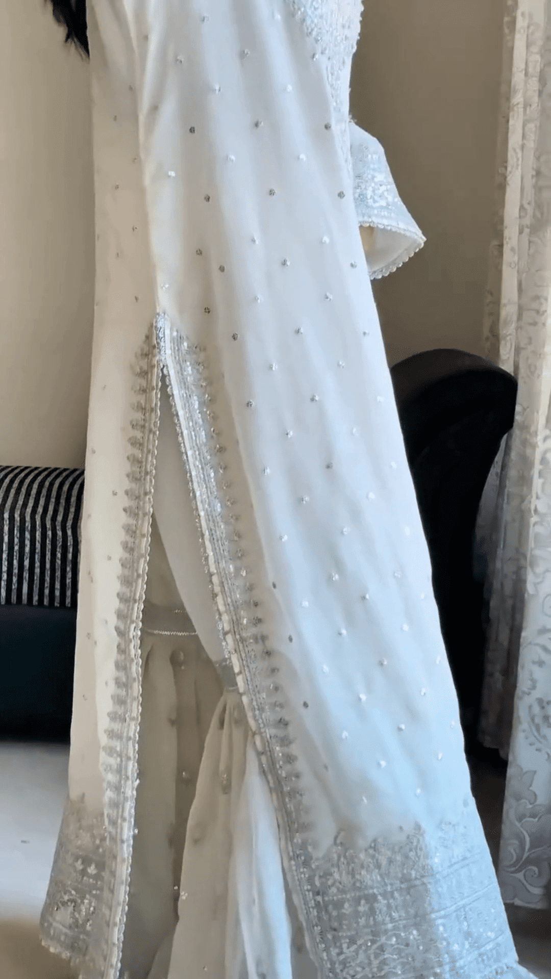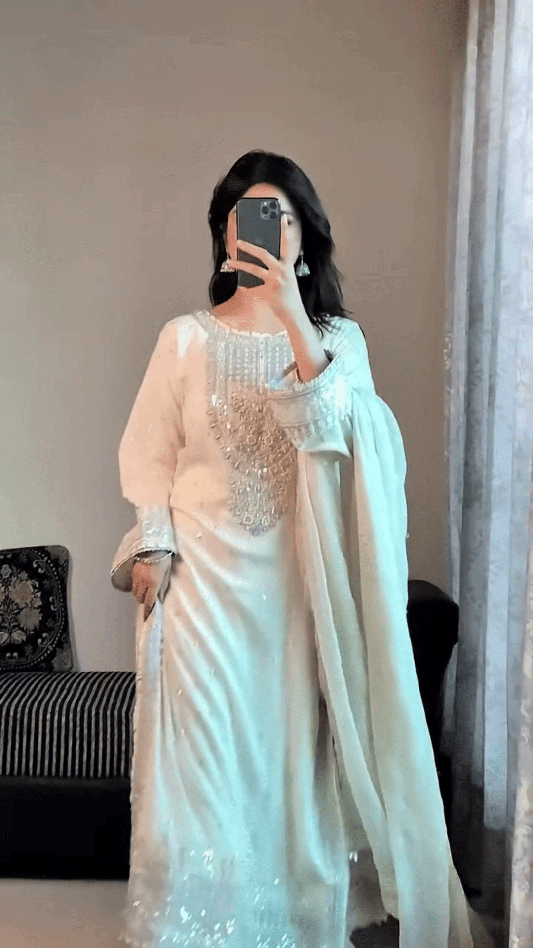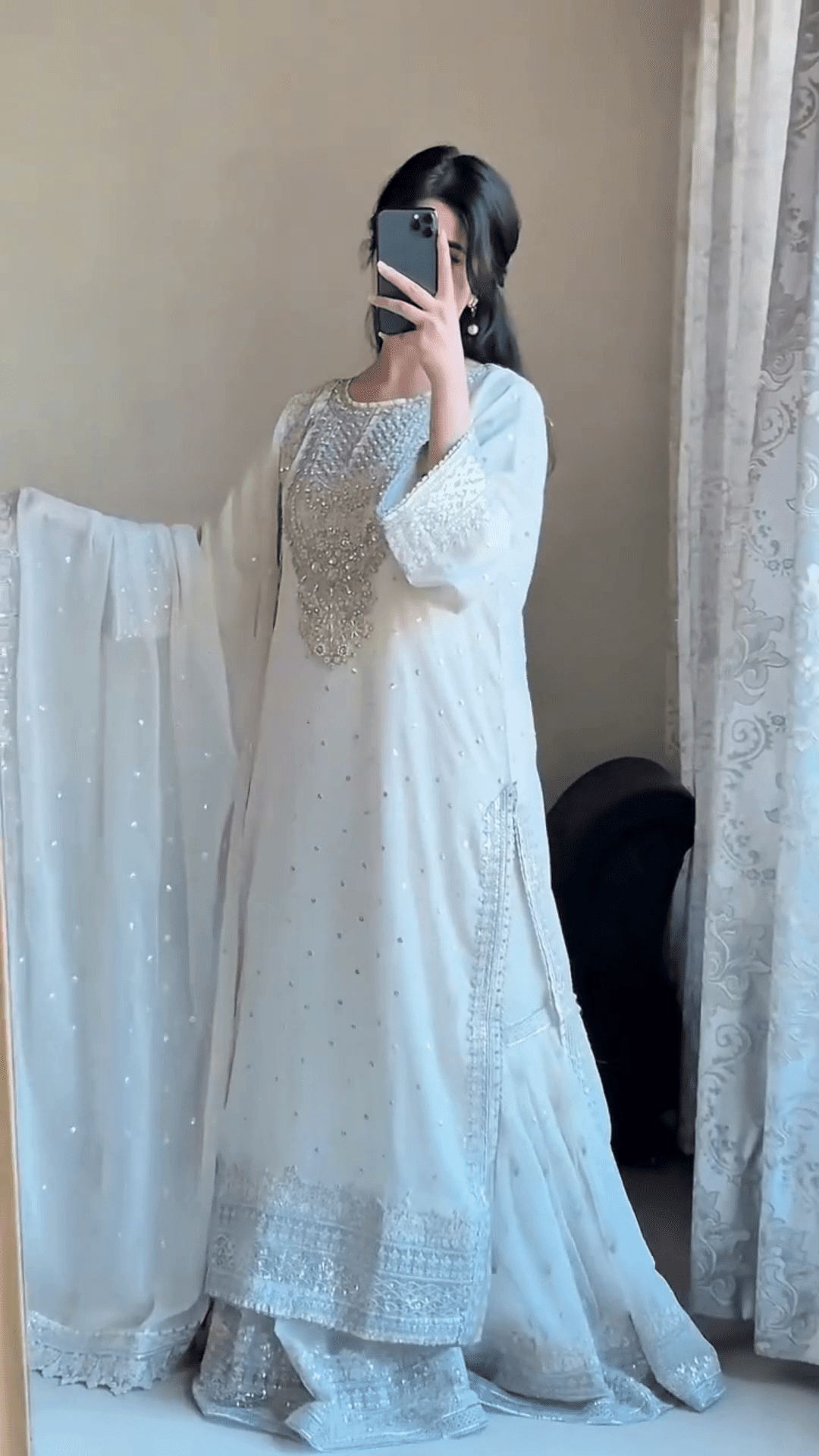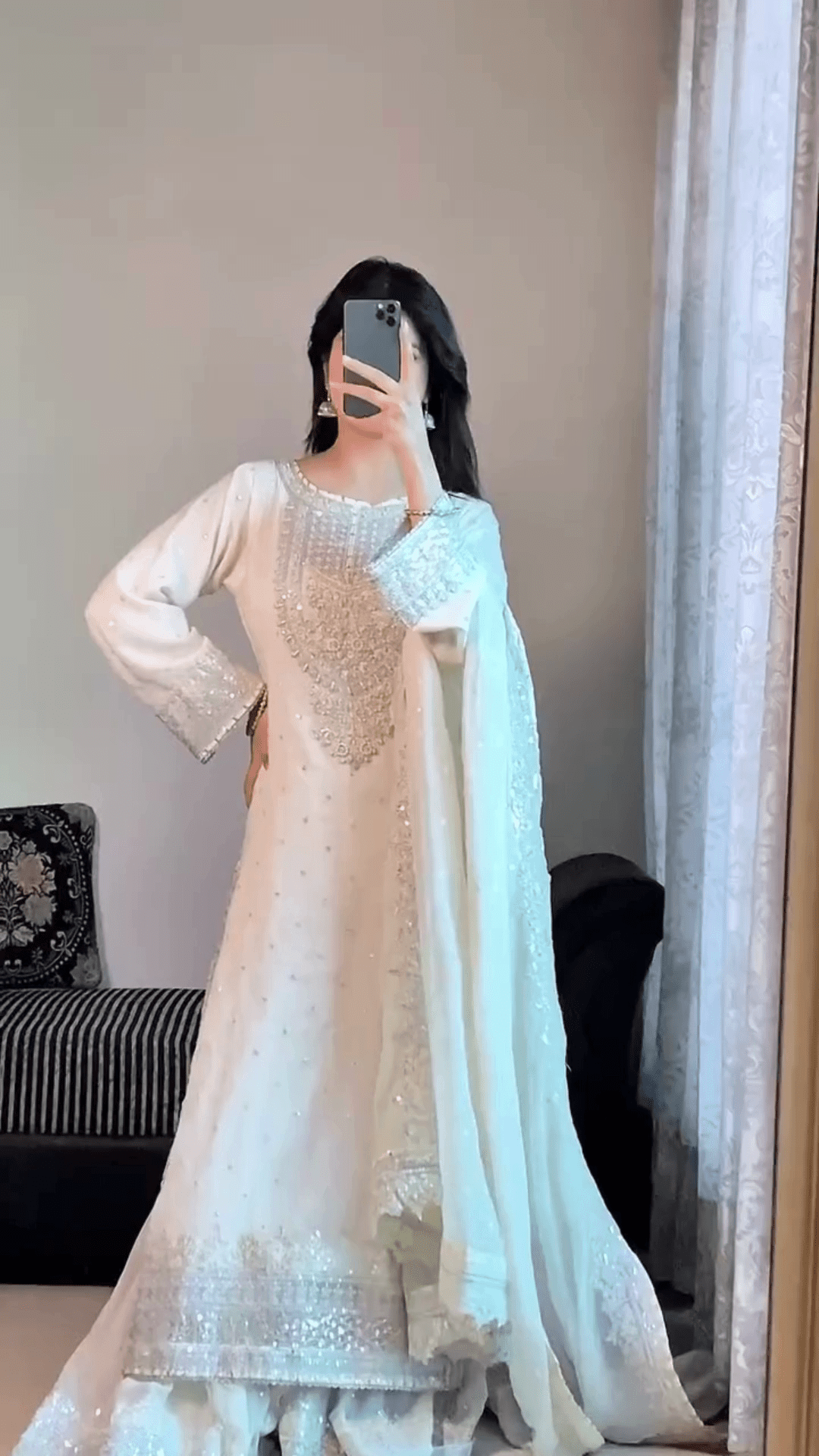 Pair It With Chandbalis, Silver Or Pearl Jewelry, And Embellished Juttis. A Sleek Hairdo Or Soft Curls Will Complement The Regal Aesthetic Beautifully. For A More Contemporary Twist, Add A Statement Belt Over The Waistline.