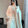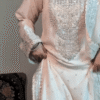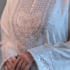 What Sets This Ensemble Apart Is The Exquisite Embroidery Work, Done With Precision And Artistry. Intricate Patterns Grace The Bodice, Sleeves, And Hemline – Elevated Further With Fine Sequinned Accents That Catch The Light And Add A Subtle Sparkle To The Overall Ensemble.