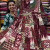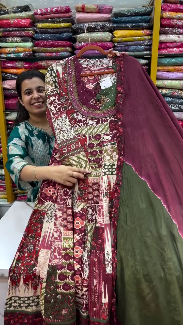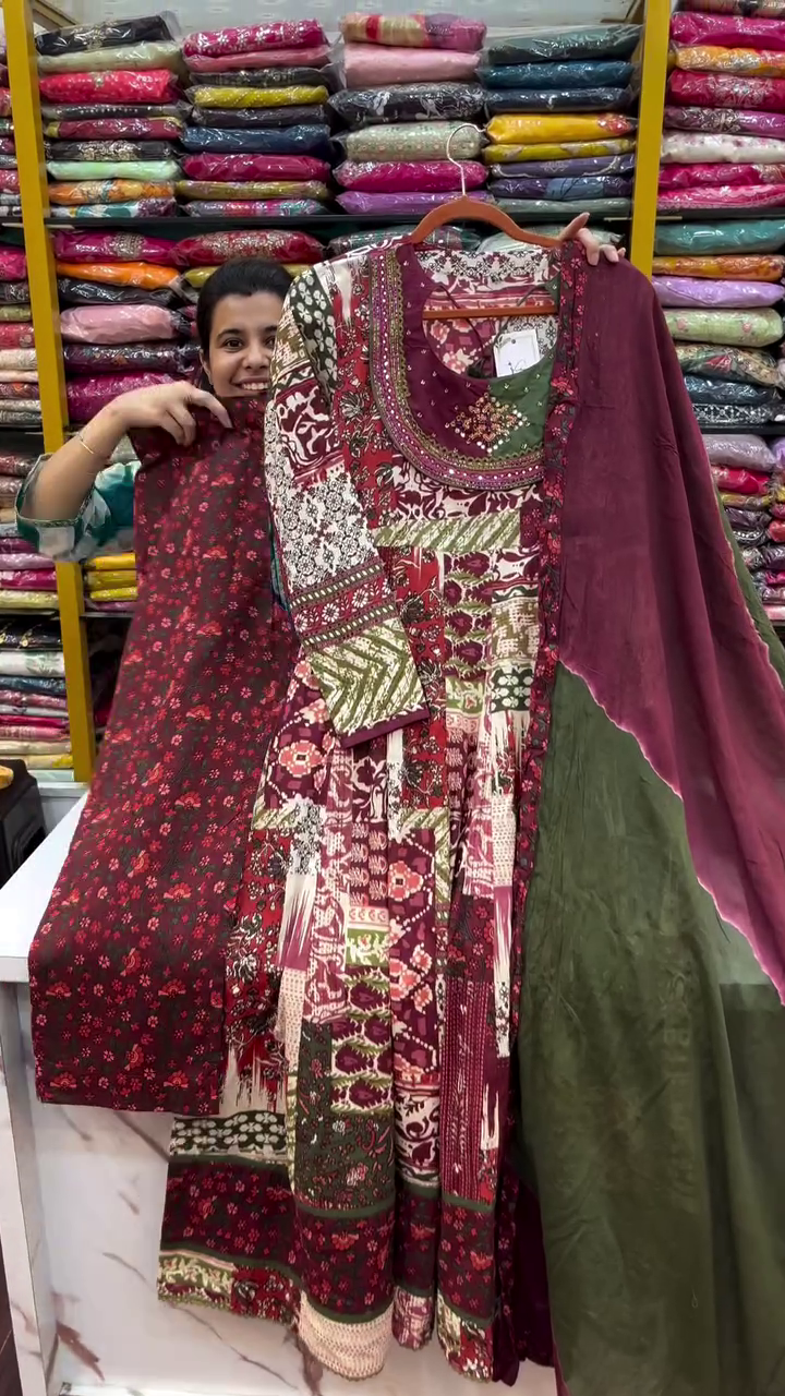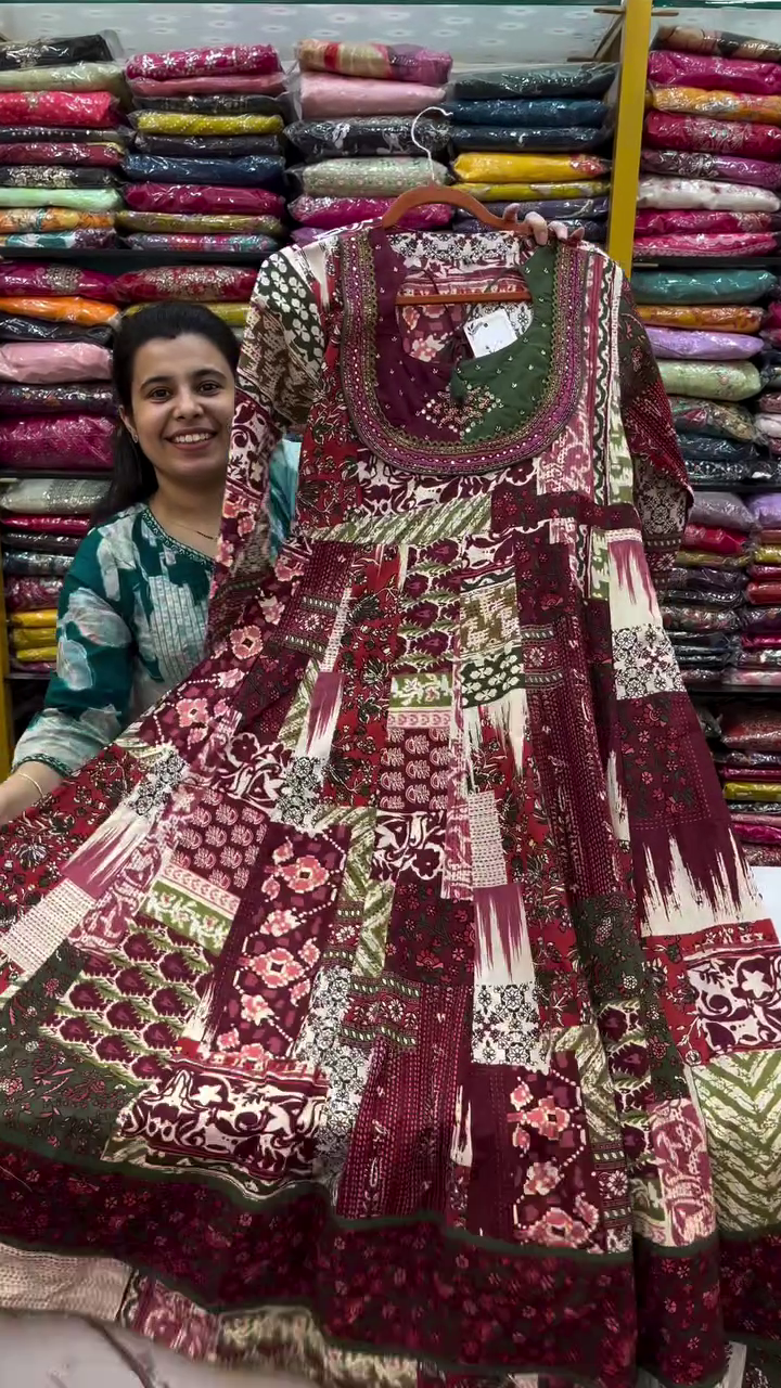 Cotton and rayon fabrics are known for their **breathability**, keeping you comfortable during warm days, while still providing enough warmth for cooler evenings. The loose fit of the Anarkali style allows for **free movement**, making it ideal for activities like dancing, socializing, or simply enjoying the day. The kurti’s **three-quarter sleeves** offer coverage while remaining airy and light, making it adaptable for both summer and early fall.
