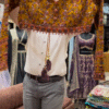 - Yellow cotton silk palazzo suit adorned with heavy thread embroidery.