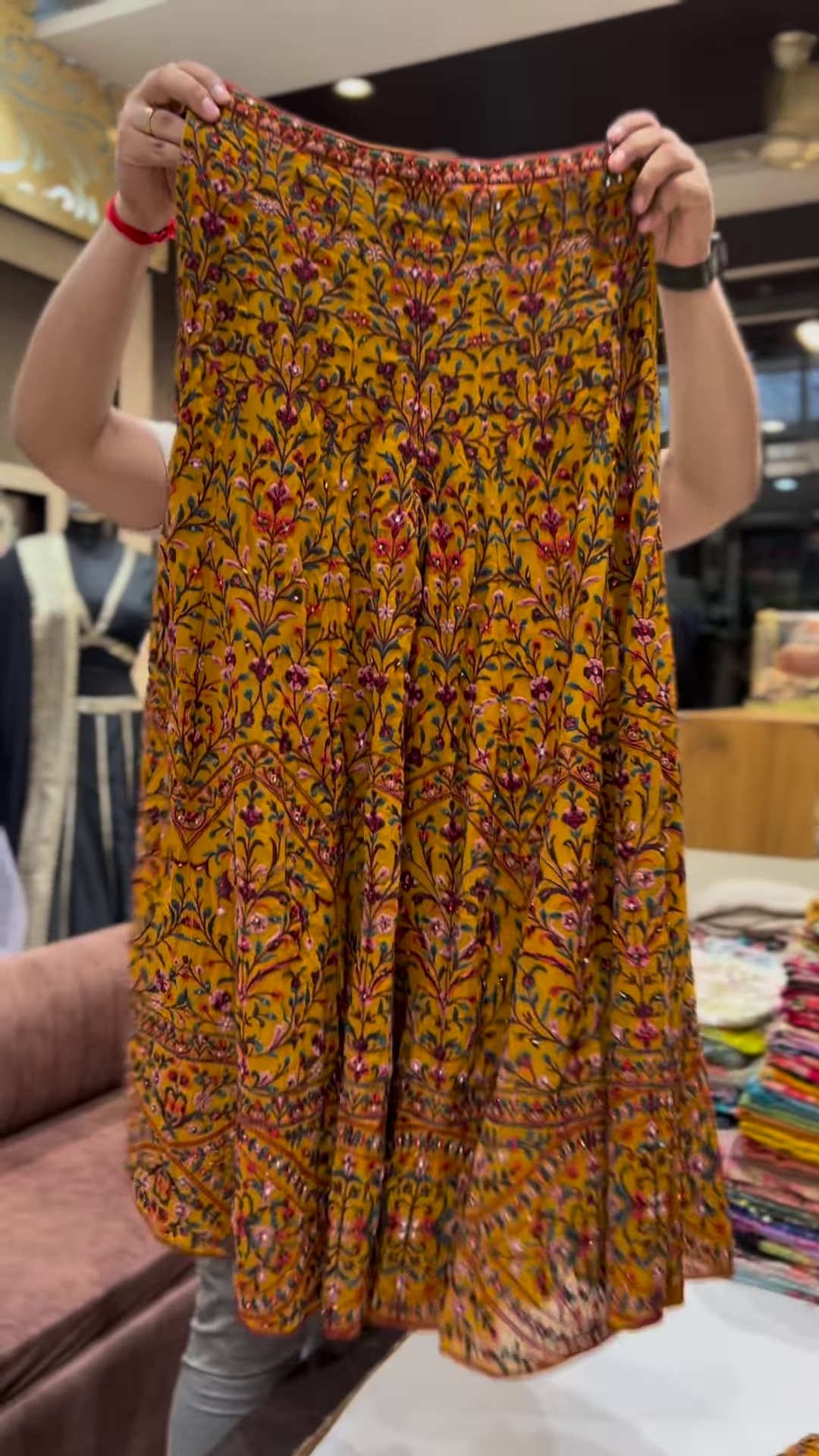yellow georgette plazzo blouse set with heavy thread embroidery